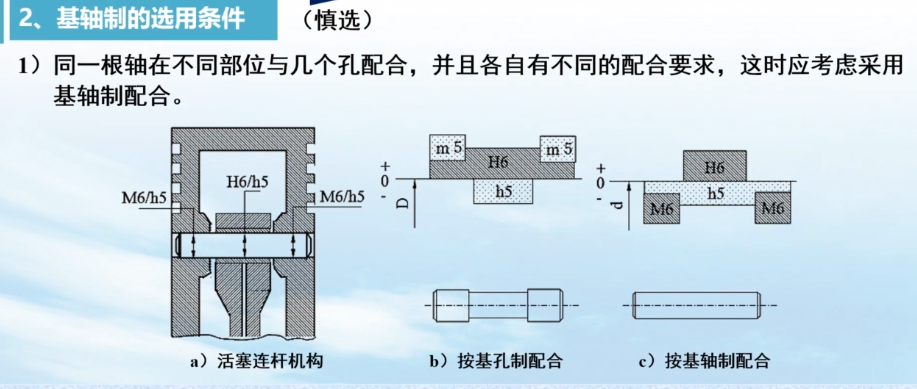 与标准件配合的时候,应以标准件为基准件选择基准制(典型:与轴承外圈配合采用基轴制,与轴承内圈配合采用基孔制)