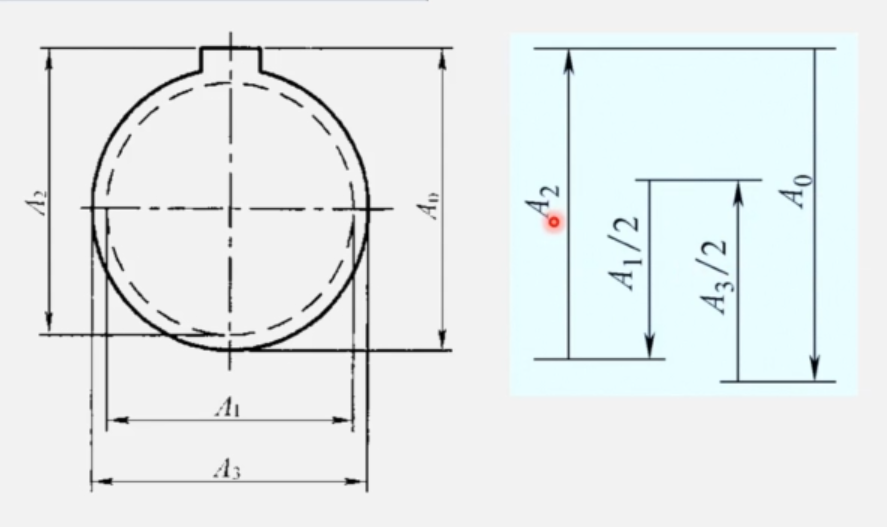 判断增环减环需要看它的基准,比如这张图,如果A1增加,那么A1基准不变的前提下A2的基准就要向下移动,同时A2不变,A3不变,那么A0就要减小,所以A1是减环。A2为什么是增环?因为A2基准不变和A3不变的前提下,A2增加导致A0基准增加,而A3基准不变(它的基准是中心线),所以A0增加,所以A2是增环。A3为什么是增环?因为A3基准不变,其它环不变的前提下,A3增加导致封闭环的长度增加,所以A3是增环