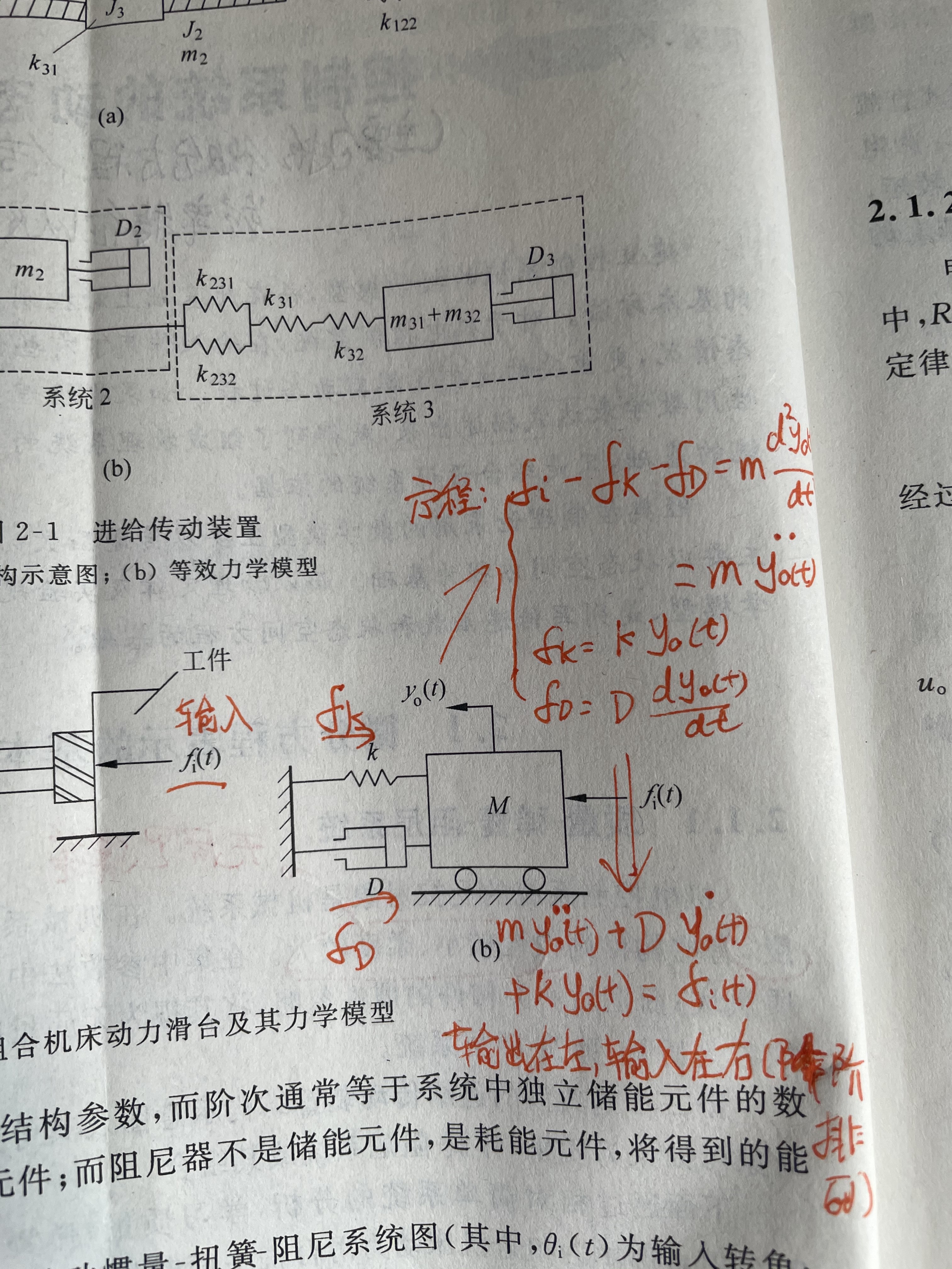 建立数学模型:根据牛二定律把方程写好,带入弹簧阻尼式子进去,然后整理成微分方程,左边输出,右边输入